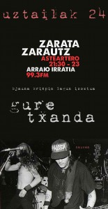 Aste honetako ZarataZarautz irratsaioan gu geu izango gara protagonista. Hasiera batean gonbidatua izan behar genuen baina datorren asterako utzi behar izan dugu zita. Hortaz, ohiko hirukotea izango gara gustoko musika jartzen eta nobedade berri batzuk ziztatzen beti bezala, asteartean, gaueko 21:30etatik aurrera.