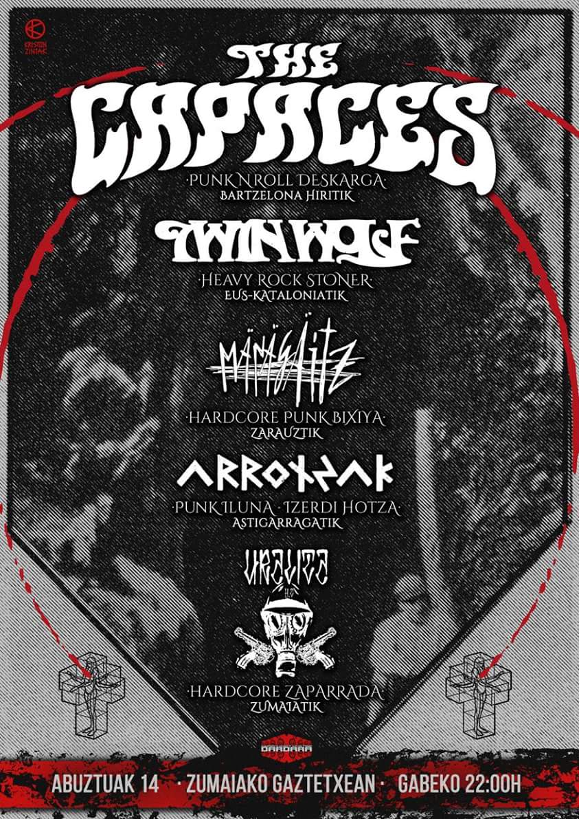 asteazkena, 4 azaroa, 2015Astebukaera honetan zarta kontzertuak edukiko ditugu Putzuzulon. Igandean hasiko gara bazkari begano batekin. Eta honen ostean Zaragozako Warsong eta Schwach talde alemaniarra edukiko ditugu oholtza gainean.